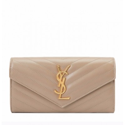 【包邮包税】 SAINT LAURENT PARIS YSL 圣罗兰 信封手拿包钱包女包 经典金属 logo 灰色牛皮 372264-BOW01-1722
