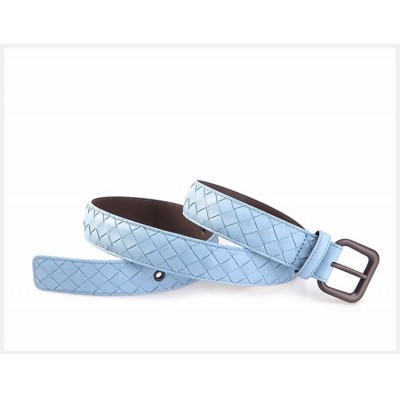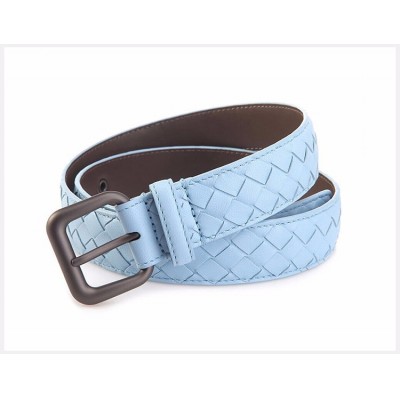 【情人节礼物】Bottega Veneta/葆蝶家 BV 女士蓝色羊皮手工编织针扣商务休闲皮带腰带 274470-V001O-4906