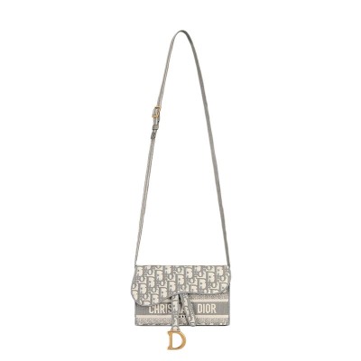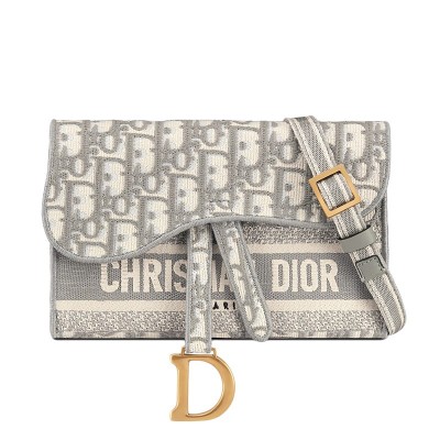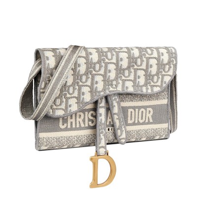 DIOR/迪奥 2021春夏新款SADDLE系列 女士灰色老花手拿斜跨单肩包S5647CRIW_M932-此商品为特殊高折扣商品需同拍2件才可自动识别回收!